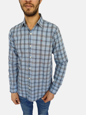 قميص تومي هيلفيغر للرجال بنقشة مربعات زرقاء