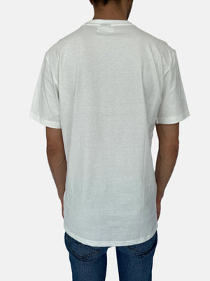 الصفحة الرئيسية تي شيرت BOSS مطبوع باللون الأبيض برقبة دائرية
