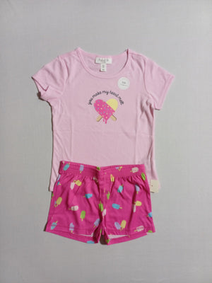 طقم بيجامات عائلية للبنات K17482 باللون الوردي مكون من قطعتين