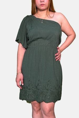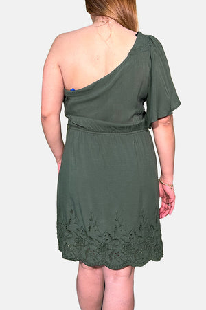 Dark Green City Studio Women One side Short Sleeve Dress 5305L18BT1