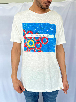 تي شيرت رجالي من LIU.JO باللون الأبيض من POOL