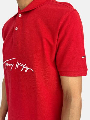 تي شيرت بولو تومي هيلفيغر للرجال باللون الأحمر
