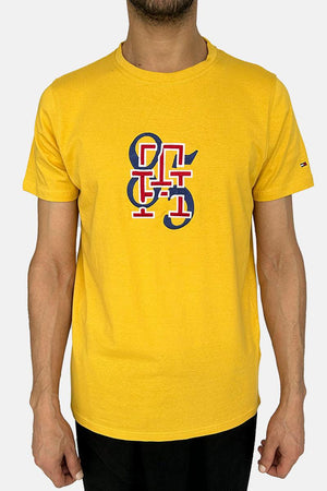 تي شيرت تومي هيلفيغر أصفر بياقة دائرية مقاس SS