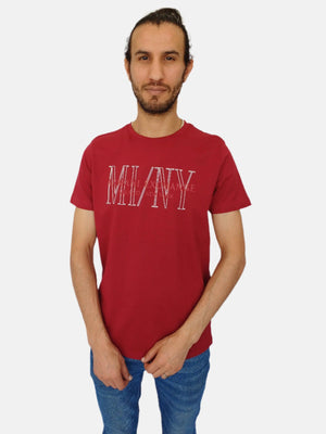 تي شيرت Armani Exchange مطبوع باللون الأبيض النبيذي برقبة دائرية