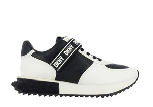 DKNY Pamm Lace Up Sneak K3249681 Calf Le/Leg Web Black White