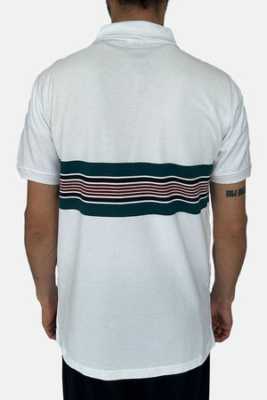 T-SHIRT POLO LACOSTE BLANC À RAYURES MULTIPLES