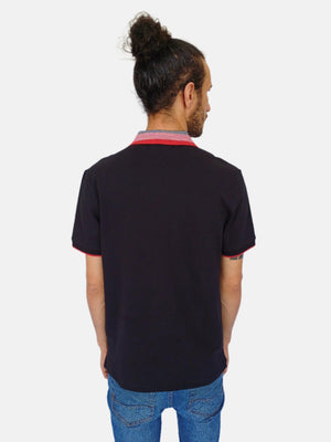 Lacoste Black Men Polo T-shirt Red,White Stripe Collar Design