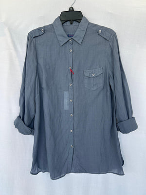 Blue Col-147 564319 Trussardi Women Linen Long Sleeve Shirt