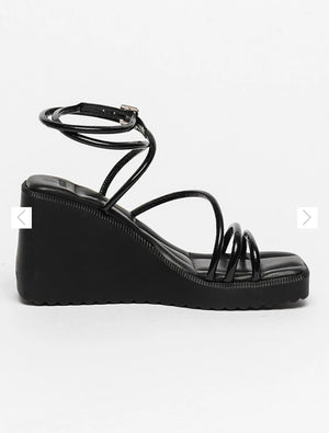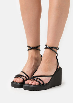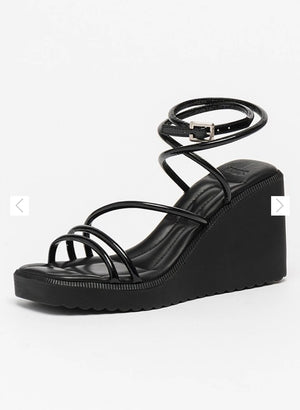 BRONX Women Wedge Sandal 84940-K Black New-Wanda Patent Vachetta