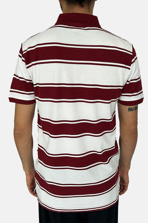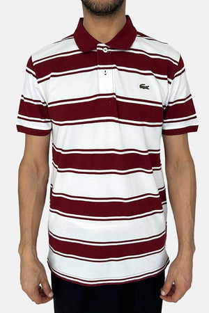 LACOSTE MAROON WHITE STRIPE POLO T-SHIRT