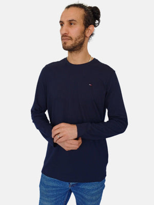 Navy Tommy Hilfiger Men Stretch Slim Fit Long Sleeve T-shirt